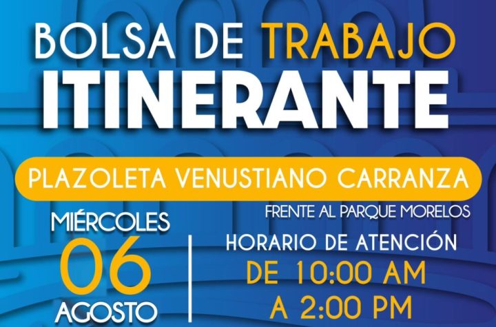 Más de 80 vacantes disponibles en diversas áreas empresariales El miércoles 06 frente al Parque Morelos Este miércoles a partir...