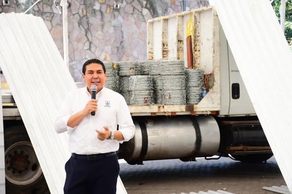 * Entrega alcalde Samuel Hidalgo, paquetes de láminas y alambre de púas.