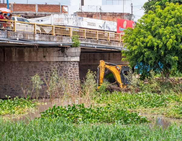 Parte de las labores que se iniciaron en el río, fue la remoción de la planta del lirio, así como crear bordos en el margen para evitar riesgo por si por las lluvias hacen que crezca el nivel del cauce.