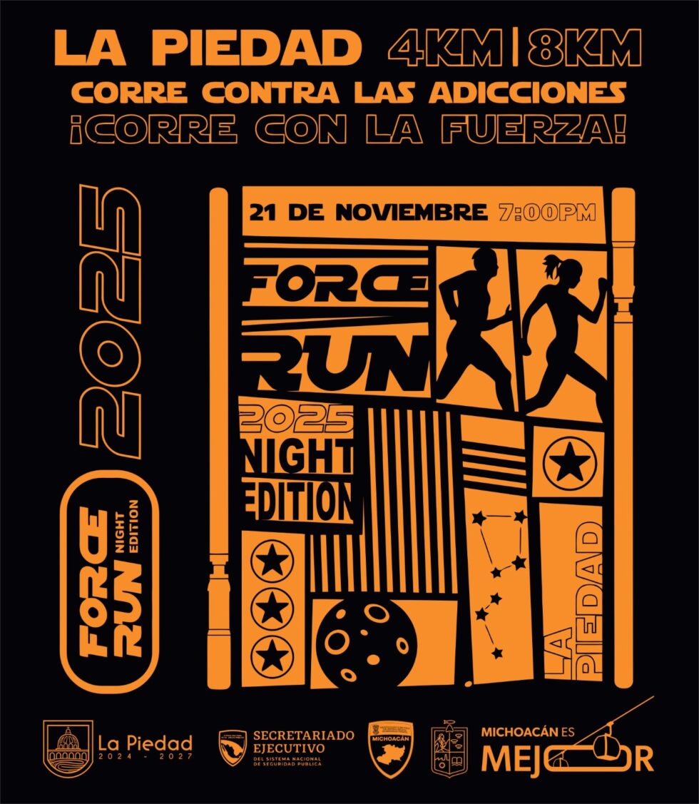 Con la intención de impulsar y promover la activación física en la población, el Gobierno Municipal de La Piedad, en colaboración con el Gobierno del Estado a través del Secretariado Ejecutivo del Sistema Nacional y Estatal de Seguridad Pública, invitan al FORCE RUN.
